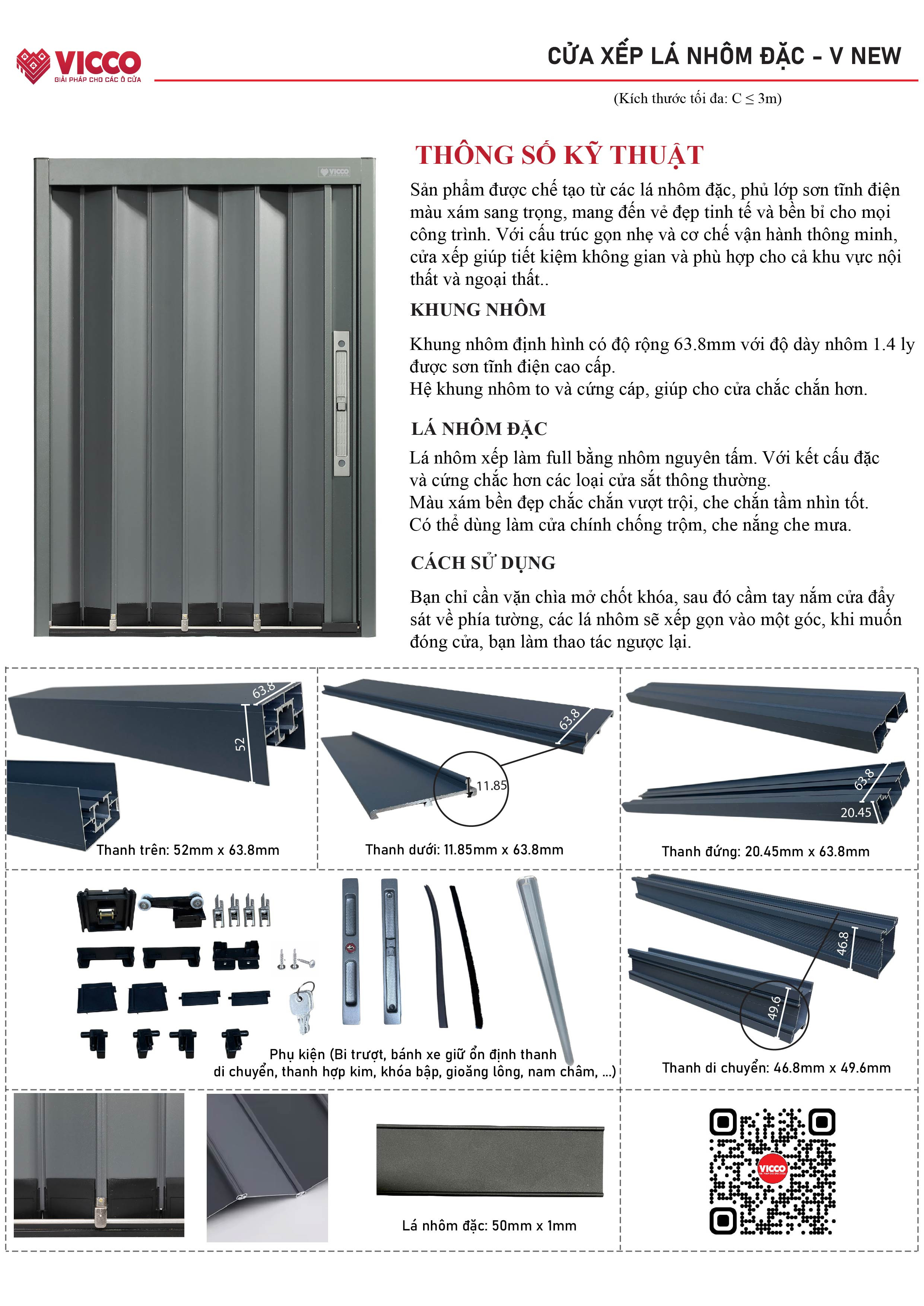 Cửa Xếp Lá Nhôm Đặc Hệ V NEW